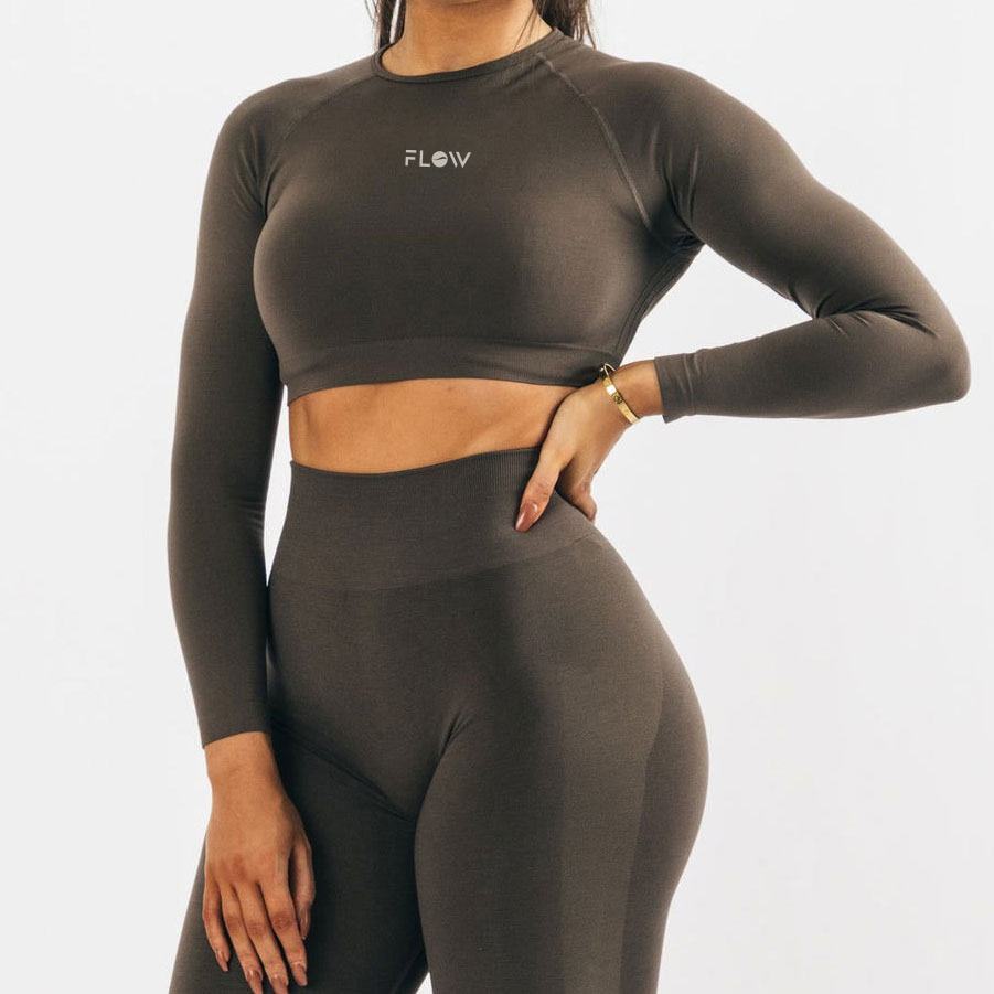 Introducing the perfect fusion of style and performance for your fitness journey – our Long Sleeve Top and Scrunch Leggings Define Set from Flow Fit. This coordinated set is designed to provide the ultimate support, comfort, and a dash of fashion flair to your workouts.