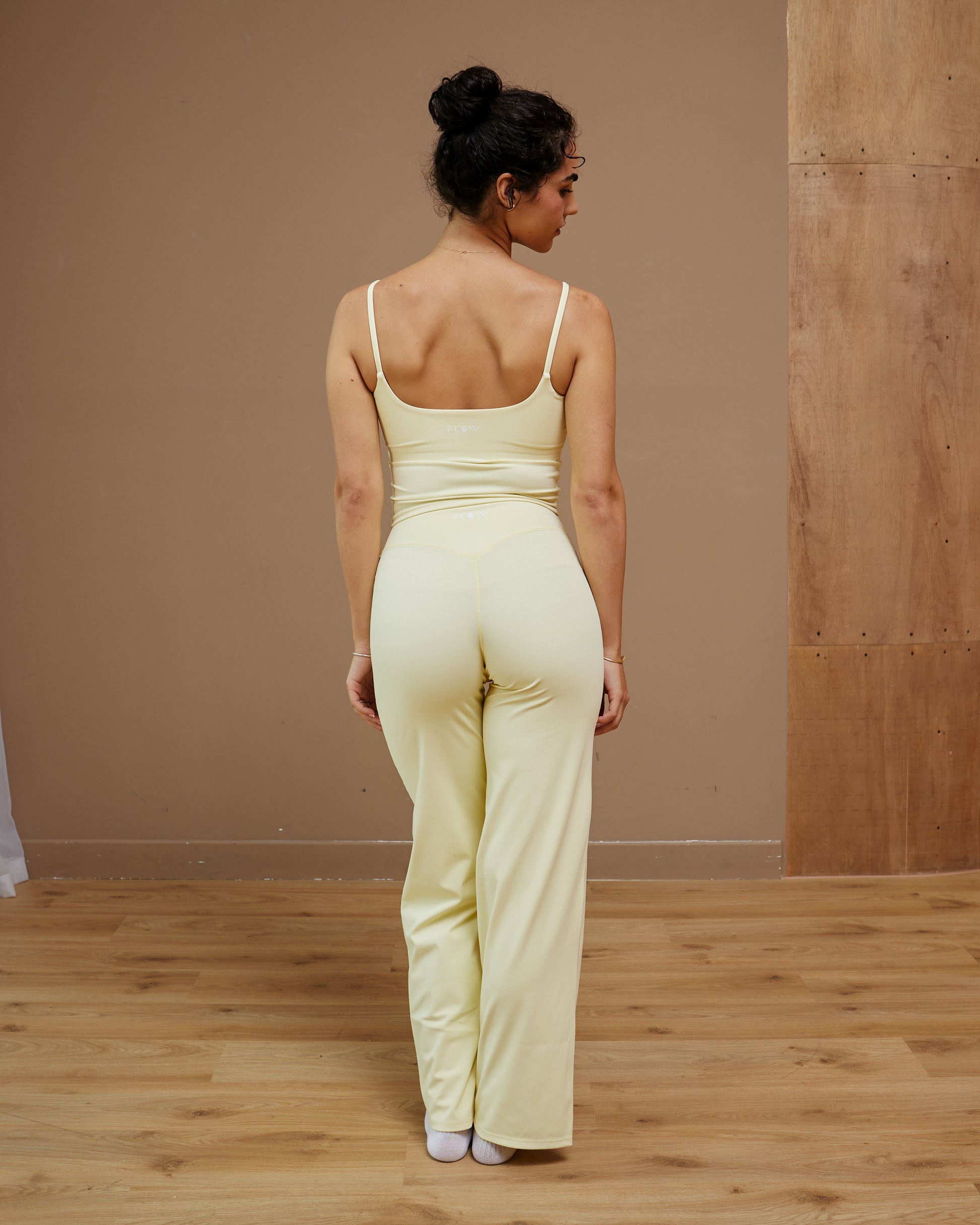 Radiate calm confidence in the Soft Set. This set ensemble blends elegance with everyday ease, featuring a minimalist square-neck cami and flowy, high-waisted flare pants that lengthen and flatter the silhouette.