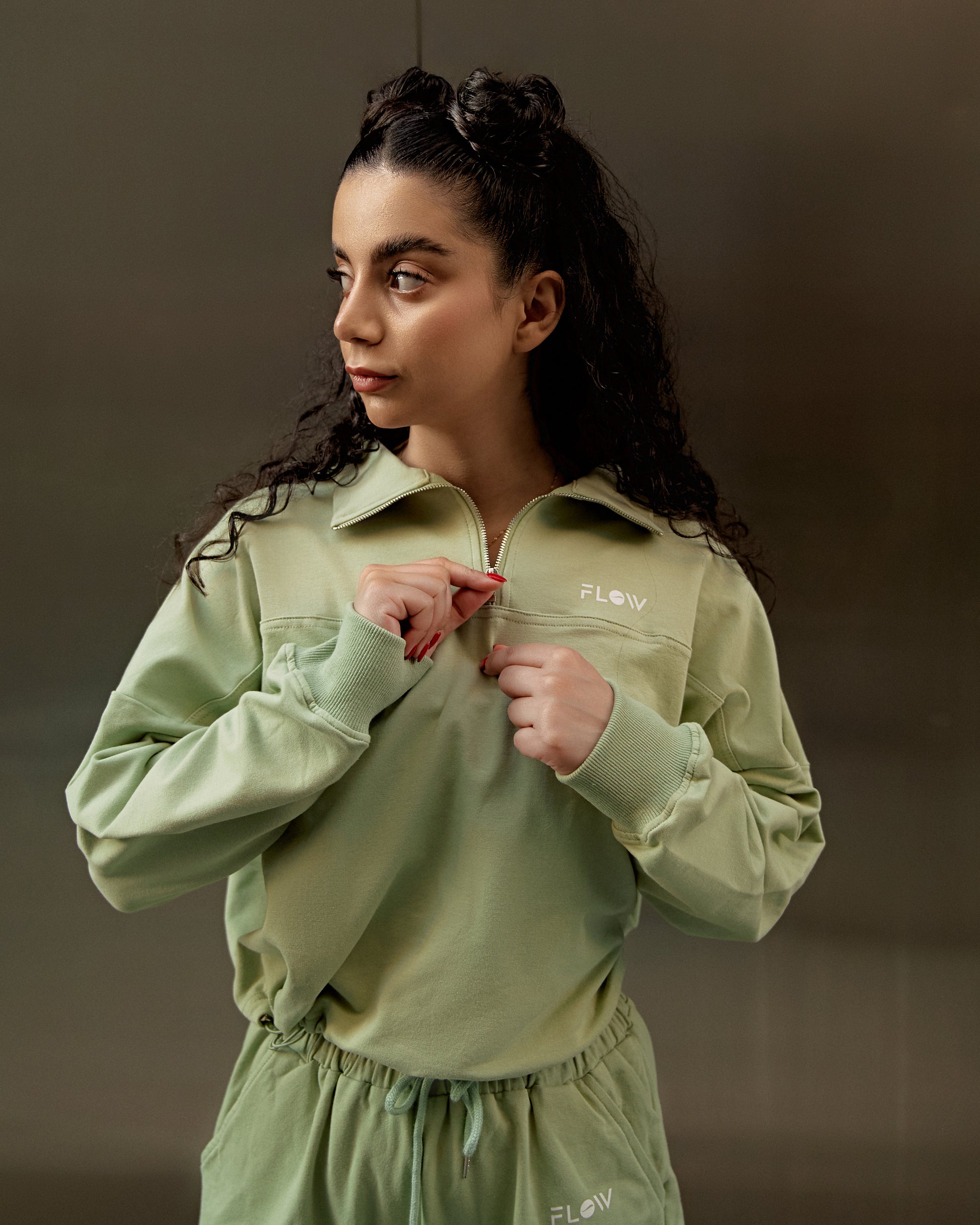 The half zipper sweatshirt features a contemporary silhouette, offering versatility for layering or wearing solo. Its half zipper design allows for customizable ventilation, while the soft, breathable fabric ensures optimal comfort during workouts or casual outings.